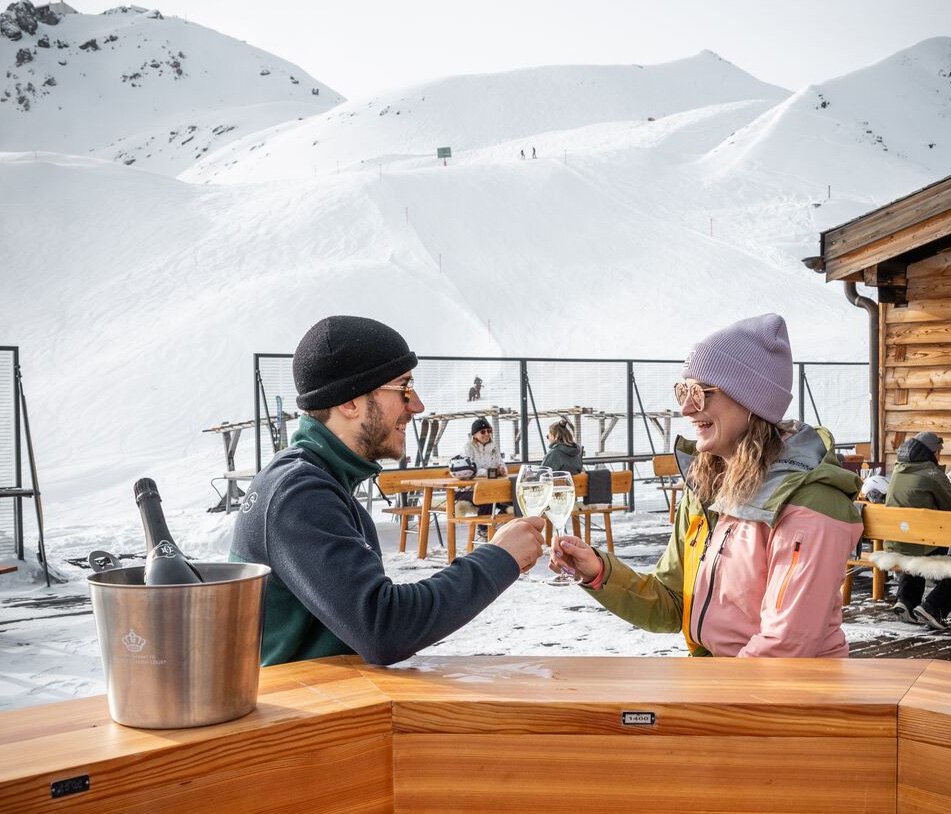 Ein traumhafter Panoramablick sowie ein urchiges und heimeliges Ambiente, das erwartet dich in unserer typischen Aroser Hütte auf 2401 m ü. M. Hier geniesst du Schweizer Spezialitäten und gönnst dir zwischen den Abfahrten eine wohlverdiente Pause auf unserer grossen Sonnenterrasse.