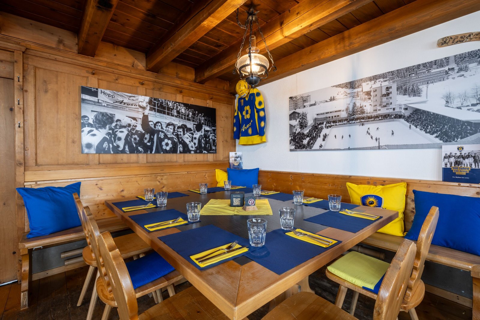Der EHC Arosa ist legendär in der Schweizer Sportgeschichte und heute noch fester Bestandteil von Arosa. In unserem EHC Stübli kannst du bei einem Sattelburger oder Sattelkafi die guten alten Zeiten Revue passieren lassen. Neben den feinen kulinarischen Köstlichkeiten erwarten dich tolle Bilder von Legenden von damals, Ausrüstungsgegenstände von Reto Dekumbis sowie das Original-Trikot von Lolo Schmid, unserem ehemaligen Gemeindepräsidenten und aktuellen Verwaltungsratspräsidenten der Arosa Bergbahnen AG.