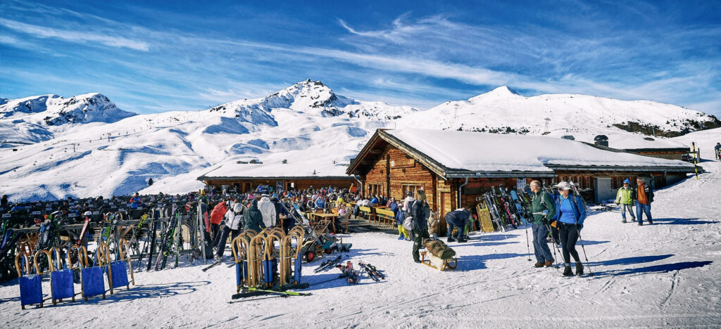 Grosse Sonnenterrasse, heimelige Skihütte, grosser Winterstrand, Mountain Mac, Hennästall oder KuhBar – nichts ist unmöglich bei uns in der Tschuggenhütte mitten im Skigebiet Arosa Lenzerheide.